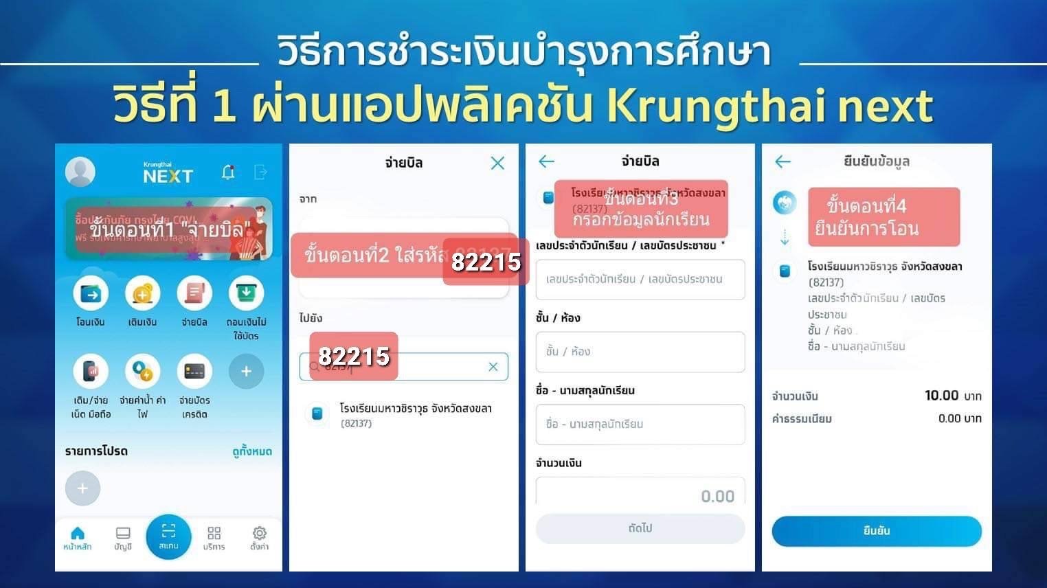 วิธีที่ 1 ชำระเงินผ่านแอปพลิเคชัน Krungthai next (CompCode : 82215)