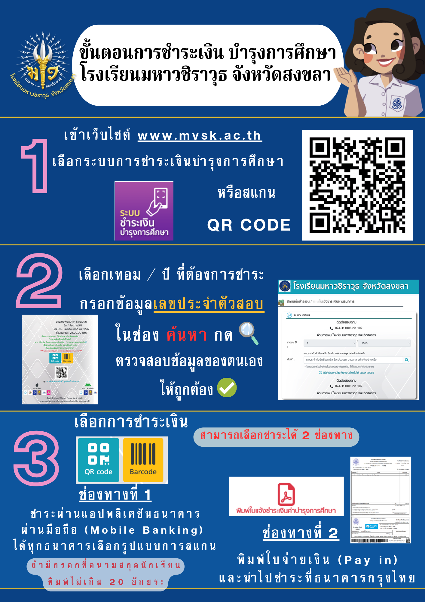 ขั้นตอนการชำระเงินบำรุงการศึกษา สำหรับนักเรียนระดับชั้น ม.1 และ ม.4