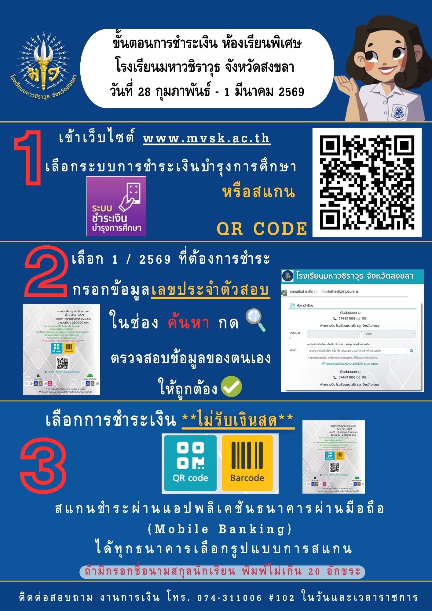 ขั้นตอนการชำระเงินห้องเรียนพิเศษ