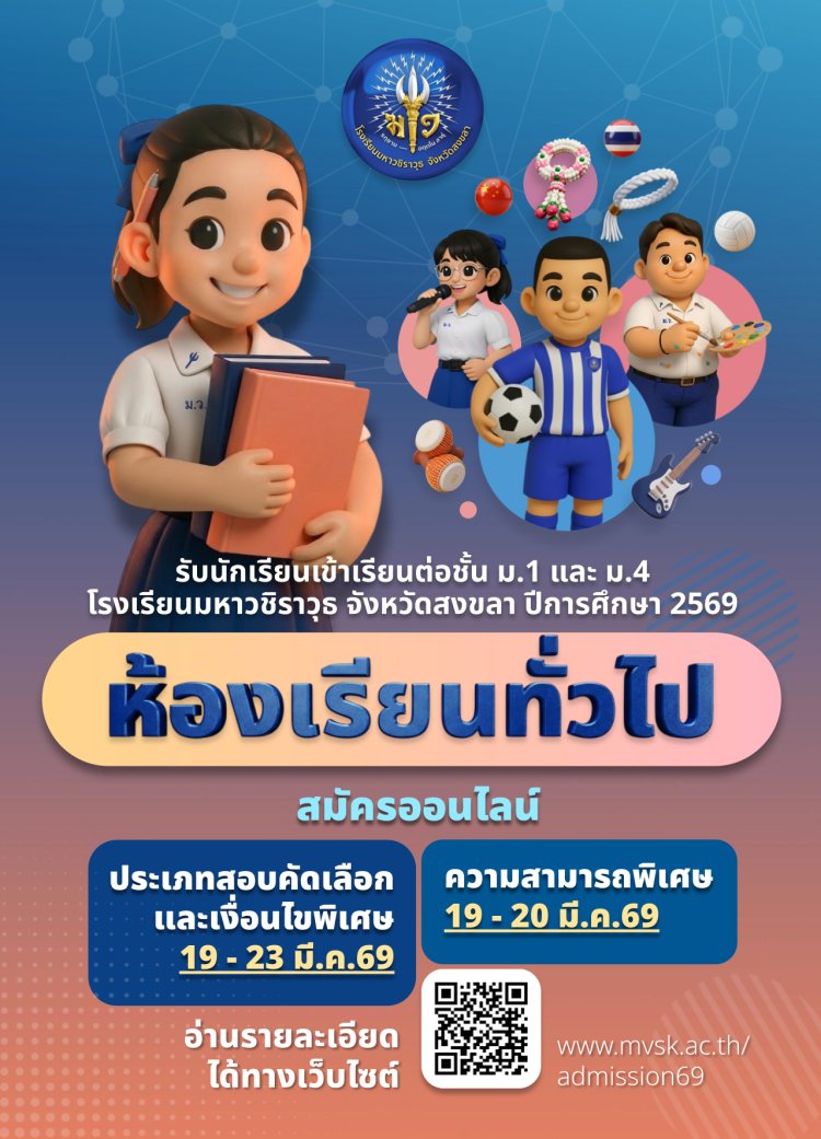 ประกาศ รายชื่อนักเรียนที่ผ่านการพิจารณาเข้าศึกษาต่อชั้น ม.4 ประเภทศักยภาพ ปีการศึกษา 2569 (เพิ่มเติม)
