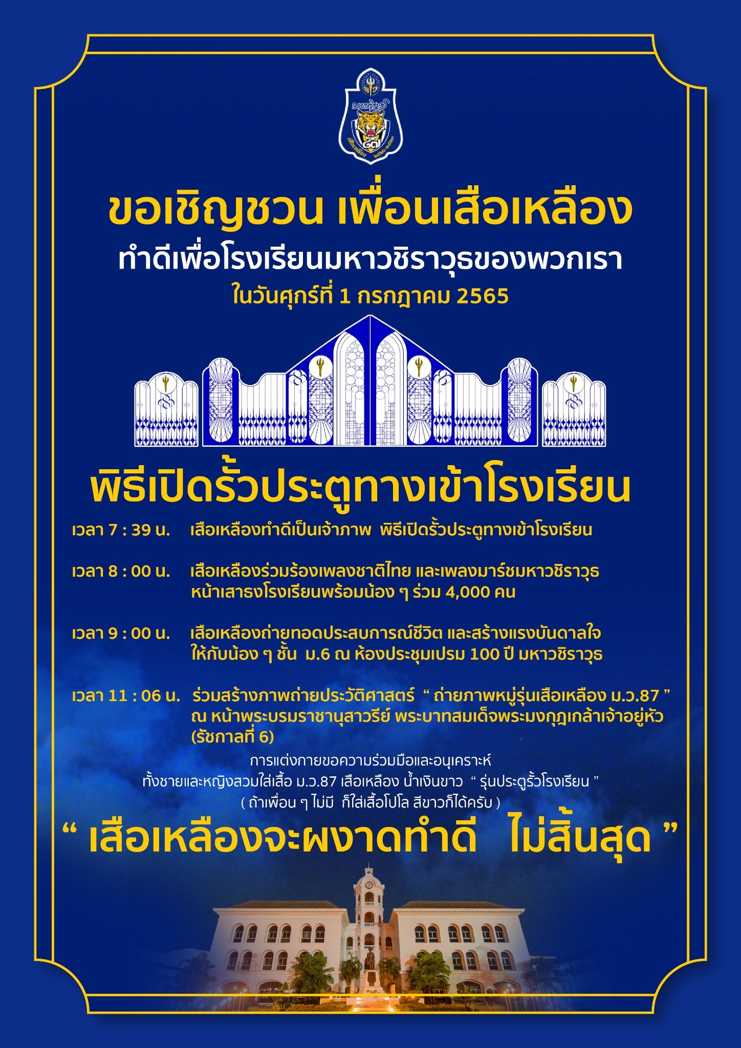 ประชาสัมพันธ์กิจกรรมของนักเรียนเก่ามหาวชิราวุธ รุ่นเสือเหลือง ม.ว.87