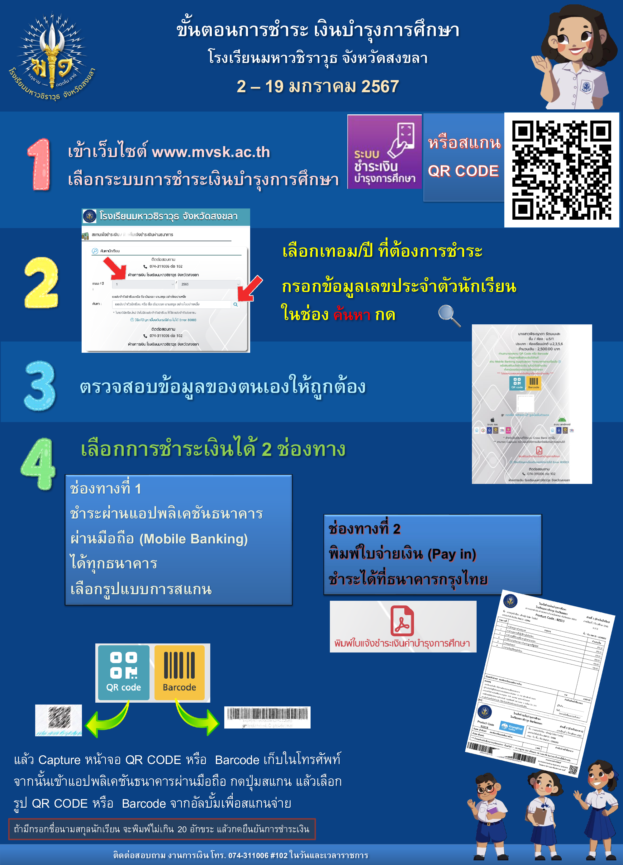 ขั้นตอนการชำระเงินบำรุงการศึกษาโรงเรียนมหาวชิราวุธ จังหวัดสงขลา