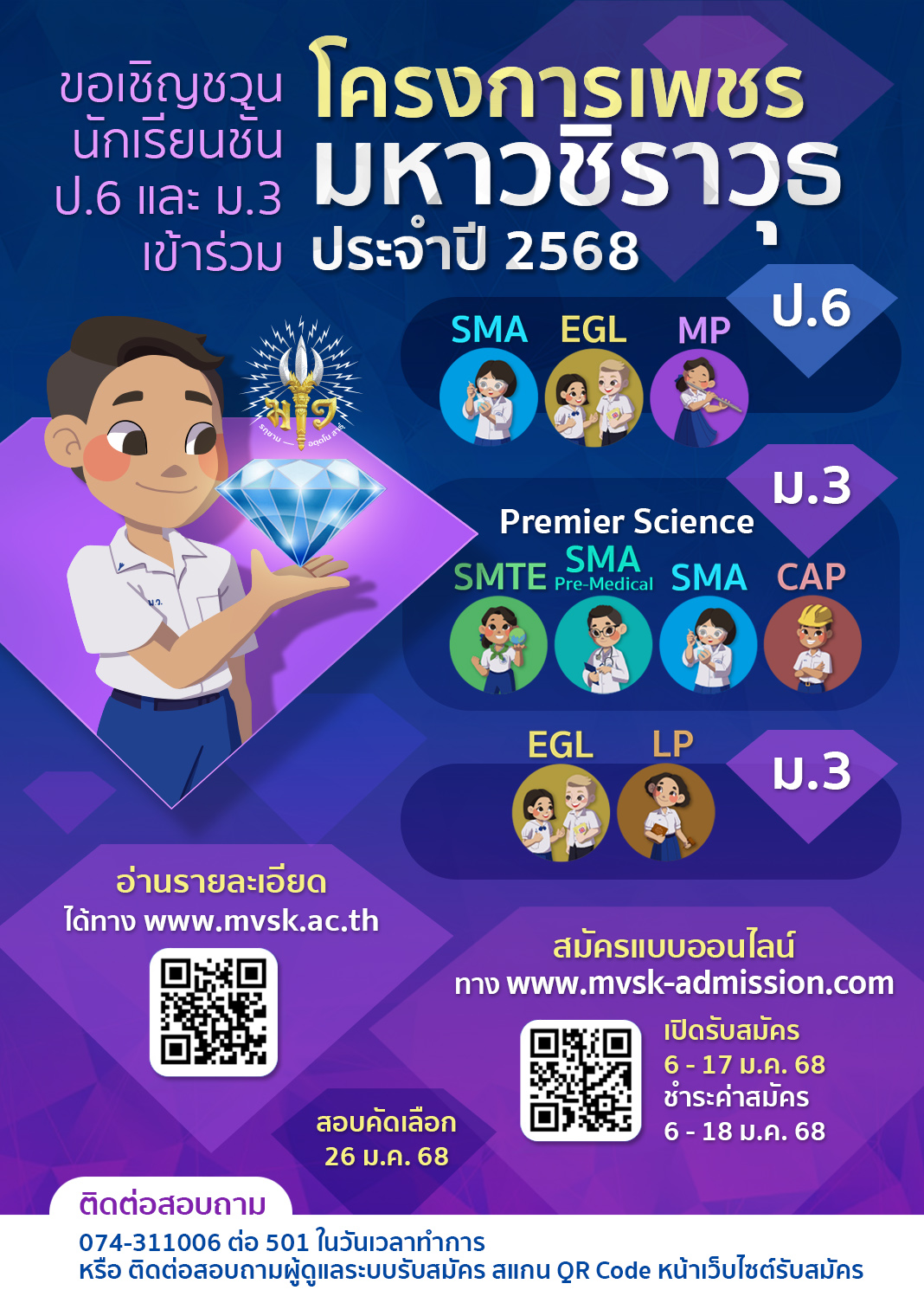 SMA โครงการพัฒนานักเรียนที่มีความสามารถพิเศษด้านวิทยาศาสตร์ คณิตศาสตร์ เทคโนโลยีและภาษา www.mvsk.ac.th/sma